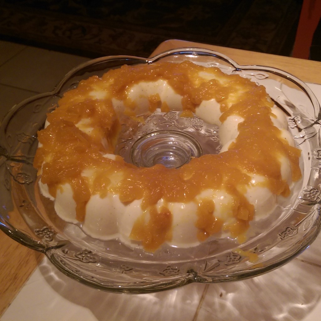 When i was young and lived in Greece, one of my favorite desserts that I would order out at dinner, or if I was fortunate and my mother made it at home, was the Panna Cotta. The dessert itself is a delectable, luscious treat that is similar to a creamier Jell-o in texture. It can be eaten plain as it is sweet from the milk and vanilla or prepped with fresh fruit. My take on the traditional Panna Cotta recipe features honey for an added touch of sweetness and a mango topping sauce for an exotic twist on a traditional favorite.