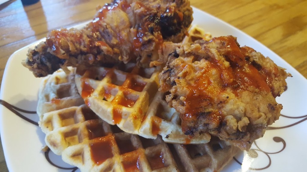 Crispy Chicken! Hot, fluffy waffles! This meal is a delicious dream. Who would have thought that chicken and waffles together would be a tasty combination? This can be eaten for breakfast, lunch, or dinner and it is super simple to make for something that packs so much flavor. Try it today!