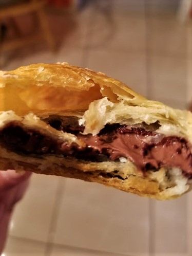 Puff pastry is one of my favorite ingredients not only to cook with, but also to eat. It is very versatile and it can be baked using savory or sweet ingredients, or a combination of both. Making puff pastry pockets is an excellent way to have delicious snacks handy, and are an even easier to-go snack for when you are running late to work in the morning. They can even be baked into a personal, quick and easy dinner. The crisp, flaky, exterior of the shell adds a bit of a crunch when bitten down to the soft, filled center for an explosive combination of flavor. I baked two batches for mine, one with Nutella, and one with cherry preserves and chocolate chips. The gooeyness of the filling in both made me want to keep eating, but I knew i had to stop so that I could leave some for others. Try yours today!