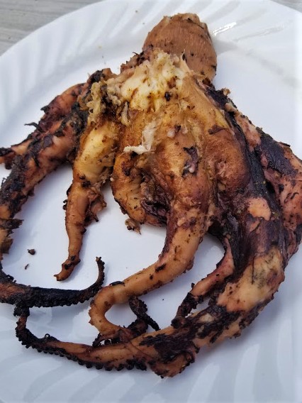 1 large, wild caught octopus, trimmed of its beak and the head cut out and cleaned