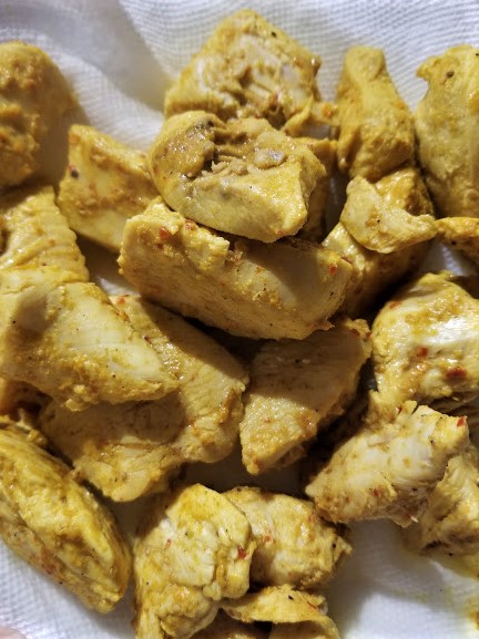 2 large boneless and skinless chicken breasts diced into nice large chunks