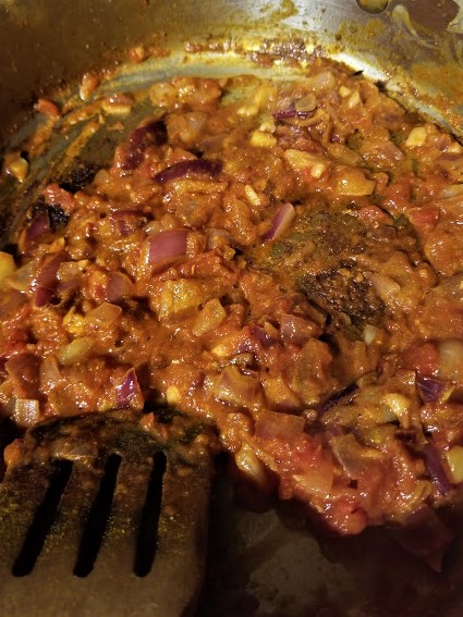 • Sauté the onions until they are fragrant and become translucent. Then add the garlic and ginger and cook until fragrant and they begin to soften. Add the spices and toast them for about 20 seconds in the pan, then begin to mix them with the onions and garlic.