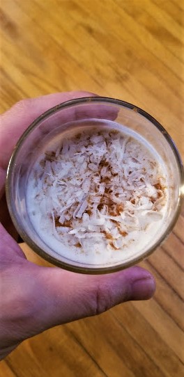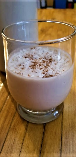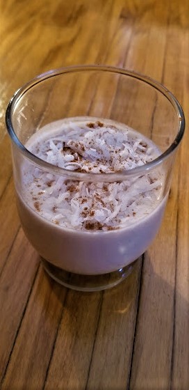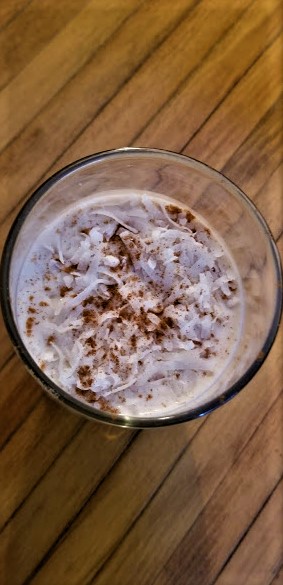 - Serve chilled and use a cinnamon stick or sprinkle a bit of cinnamon and coconut flakes at the top to garnish