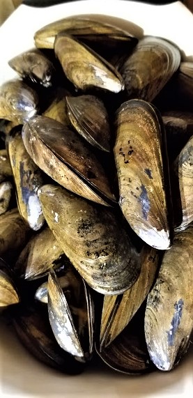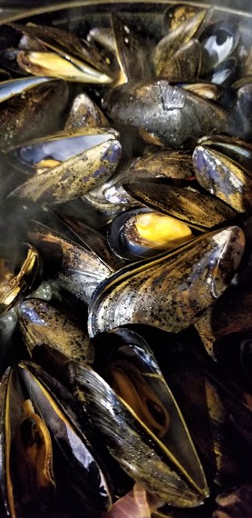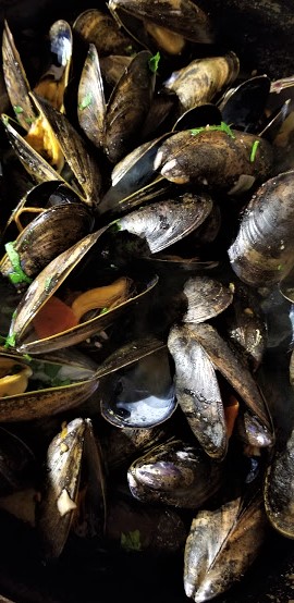 2 pounds of fresh mussels, cleaned and trimmed of any beards