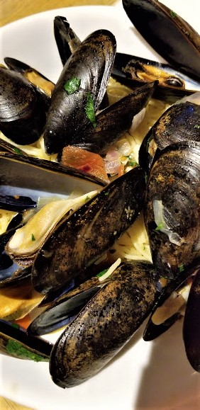 Much like wings, I can eat mussels continuously and not stop eating them. There is something about their taste and texture, that combined with a nice broth makes my mouth sing. For this recipe I used some fresh mussels that I saw at my local grocery store and I cooked them in a very flavorful, garlicky broth, that has a bit of a kick to it. The hardest part was deciding whether I wanted to eat with with crust, toasted bread to dip or with some pasta, so I made both so that I did not have to choose. Enjoy!
