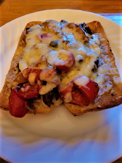 Back when I used to work at an Italian Pizza and Sub shop, I could attest majority of my weight gain to the cheesesteaks and not the pizza. Something about the melted cheese and salty steak combined with the crunchy bread was more enticing to me than the pizzas. While the cheesesteaks at my old job were delicious, I did not enjoy using the think, processed steak meat. For this recipe, I used what I learned at the pizzeria but with better cuts of meat, with garlic bread as its place holder. The result was a filling meal that did not allow me to leave not even one crumb. Try yours today!
