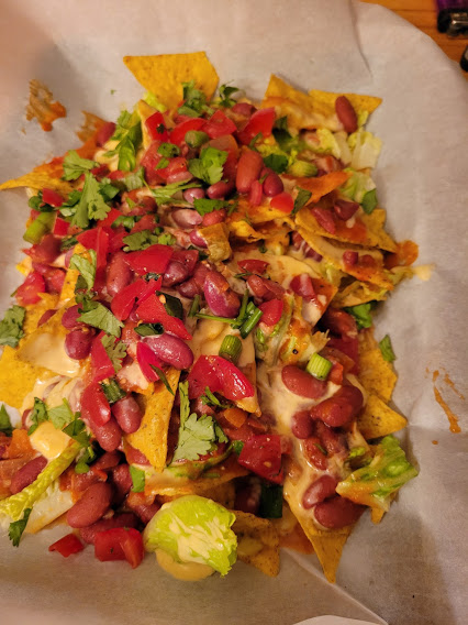Got any leftover chili or some cans of beans laying around? Then make this delicious, but messy, tray of nachos. Very simple to make and can be done in minutes. Nachos are not just for an appetiter or for parties; they can be a full-on meal. This recipe is very decadent and can be shared or eaten solo!